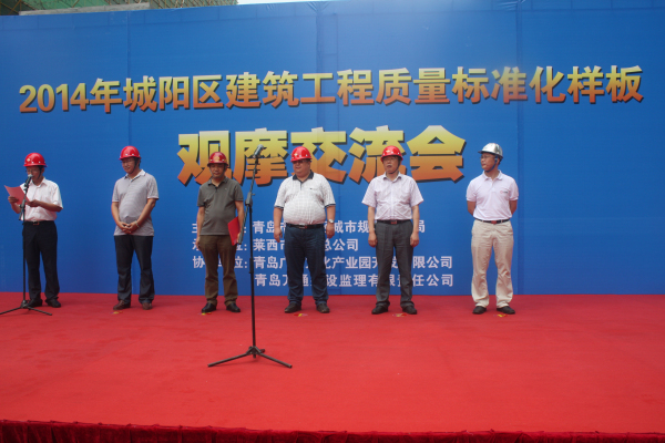今天上午,建筑工程質(zhì)量標(biāo)準(zhǔn)化樣板觀摩交流會(huì)在一公司于全志項(xiàng)目部施工的萬(wàn)科玫瑰里工程召開(kāi)。青島市質(zhì)監(jiān)站總工程師崔浩,城陽(yáng)區(qū)建設(shè)局副局長(zhǎng)焦萌等有關(guān)領(lǐng)導(dǎo)到會(huì),公司總經(jīng)理趙成福在會(huì)上作了介紹發(fā)言,全市開(kāi)發(fā)、監(jiān)理、施工單位1000余人參加了觀摩會(huì)。