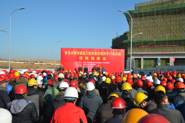 12月5日上午,青島市貫徹建設(shè)工程質(zhì)量治理兩年行動(dòng)實(shí)施現(xiàn)場(chǎng)觀摩會(huì)在我公司王慎平項(xiàng)目部承建的德國企業(yè)中心項(xiàng)目召開。青島市建管局質(zhì)量監(jiān)督站總工程師崔浩、黃島區(qū)城市建設(shè)局副局長(zhǎng)薛旻傳、我公司董事長(zhǎng)孫涌同志分別進(jìn)行了經(jīng)驗(yàn)介紹和總結(jié)發(fā)言,來自青島市四市七區(qū)的九百余家建設(shè)、施工、監(jiān)理單位,三千余名有關(guān)負(fù)責(zé)人對(duì)德國企業(yè)中心項(xiàng)目工程實(shí)體展示區(qū)、建設(shè)工程質(zhì)量治理兩年行動(dòng)展板展示區(qū)、新技術(shù)及新材料應(yīng)用展示區(qū)、工藝樣板展示區(qū)、綠色施工展示區(qū)等分別進(jìn)行了觀摩。參會(huì)人員對(duì)德國企業(yè)中心項(xiàng)目工程質(zhì)量、常見質(zhì)量問題的治理、樣板領(lǐng)路的作法、綠色施工等給予了高度評(píng)價(jià)。