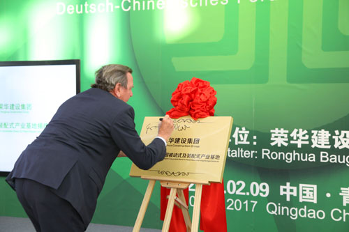 德國前總理施羅德先生應榮華建設集團和中德生態(tài)園管委的邀請于2月8日開始對青島為期四天的訪問之旅,出席由我集團主辦的中德可持續(xù)建設論壇,并為集團的被動房及裝配式產(chǎn)業(yè)基地揭牌,集團董事長孫涌同志全程陪同。集團總裁趙成福、副總裁張行良、總裁助理周兵一、副總工程師楊自統(tǒng)、三公司總經(jīng)理于永剛、中德聯(lián)合被動房有限公司總經(jīng)理聶建衛(wèi)一起參加。