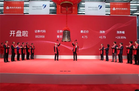 2019年3月26日上午9時(shí), 青島農(nóng)商銀行在深交所成功掛牌上市,正式登陸A股資本市場,成為全國最年輕的A股上市銀行和A股市場規(guī)模最大的農(nóng)商銀行。