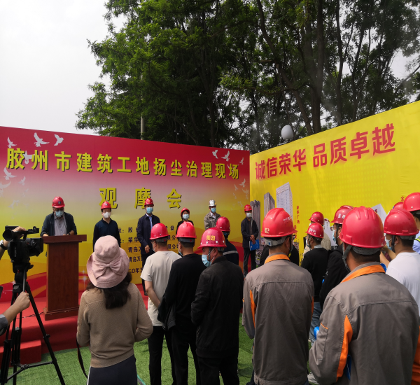 2020年5月22日,膠州市建筑工地?fù)P塵治理現(xiàn)場(chǎng)觀摩會(huì)在六公司孫德洲項(xiàng)目部施工的公園大道項(xiàng)目成功召開(kāi)。膠州市城鄉(xiāng)建設(shè)局王世梅副局長(zhǎng)、安監(jiān)站劉敬玉站長(zhǎng)、質(zhì)監(jiān)站于清正站長(zhǎng)、市政質(zhì)安站張鵬程站長(zhǎng)、萬(wàn)科房地產(chǎn)有限公司副總經(jīng)理卜令雨等領(lǐng)導(dǎo)參會(huì),集團(tuán)公司副總裁周兵一出席并發(fā)表講話(huà)。膠州市安監(jiān)站、質(zhì)監(jiān)站監(jiān)督執(zhí)法人員以及膠州市在建工程公司負(fù)責(zé)人、項(xiàng)目經(jīng)理、安全員共計(jì)230余人參與觀摩。