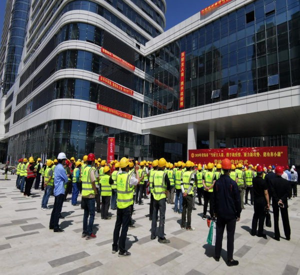 2020年5月28日,青島市“當(dāng)好主人翁、攜手戰(zhàn)疫情、聚力新攻勢(shì)、建功奔小康”勞動(dòng)競(jìng)賽啟動(dòng)儀式在李滄區(qū)國(guó)際院士港產(chǎn)業(yè)核心區(qū)項(xiàng)目順利舉行,啟動(dòng)儀式由青島市勞動(dòng)競(jìng)賽委員會(huì)主辦,李滄區(qū)總工會(huì)協(xié)辦。市人大常委會(huì)副主任、市總工會(huì)主席劉圣珍、市總工會(huì)黨組書記彭建國(guó)、市發(fā)改委副主任徐守國(guó)等領(lǐng)導(dǎo)出席。青島市15家單位,30個(gè)重點(diǎn)建設(shè)項(xiàng)目,共計(jì)300余人參會(huì),集團(tuán)公司組隊(duì)參加。