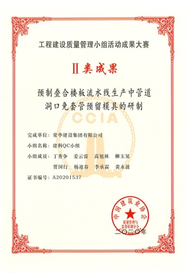 9月28日,中國建筑業(yè)協(xié)會公布2020年度工程建設(shè)優(yōu)秀質(zhì)量管理小組活動成果大賽名單,集團(tuán)公司獲Ⅱ類成果1項:建科QC小組-預(yù)制疊合樓板流水線生產(chǎn)中管道洞口免套管預(yù)留模具的研制,獲Ⅲ類成果1項:中英創(chuàng)新產(chǎn)業(yè)園項目QC小組-提高被動式超低能耗建筑坡屋面保溫施工質(zhì)量。