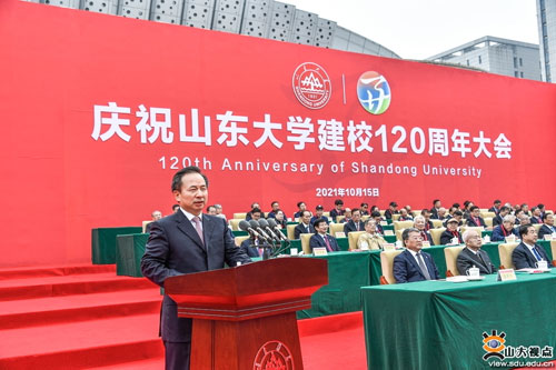 10月15日上午,山東大學(xué)在中心校區(qū)體育場舉行慶祝建校120周年大會。