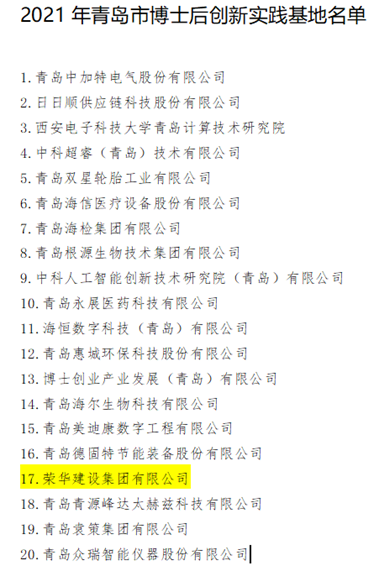 12月15日,青島市人力資源和社會保障局正式公布了2021年青島市博士后創(chuàng)新實踐基地名單,集團公司成功獲批青島市博士后創(chuàng)新實踐基地。