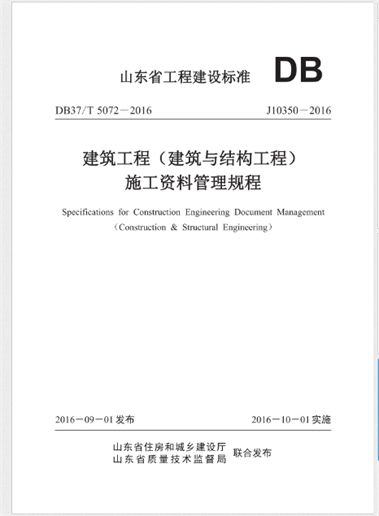 本規(guī)程是依據(jù)《建筑工程施工質(zhì)量驗收統(tǒng)一標(biāo)準(zhǔn)》(GB 50300-2013)、《建筑工程資料管理規(guī)程》(JGJ/T 185-2009)和各專業(yè)工程施工質(zhì)量驗收規(guī)范等相關(guān)規(guī)定,結(jié)合山東省實際情況編制。既保證了國家標(biāo)準(zhǔn)、規(guī)范的全面實施,又體現(xiàn)了地方標(biāo)準(zhǔn)的相對提高和進步,具有較強的適應(yīng)性和可操作性。