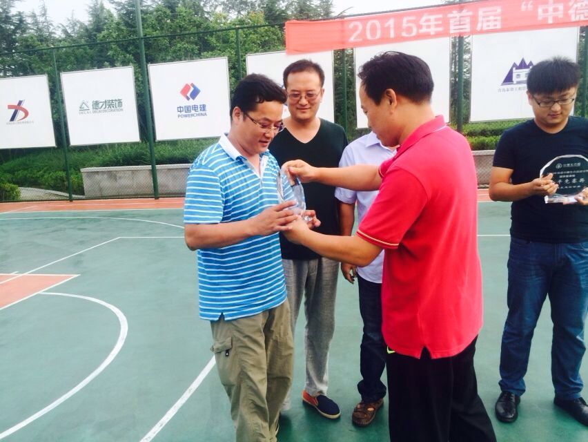2015年8月10日,由中德聯(lián)合集團(tuán)有限公司主辦的首屆“中德生態(tài)園建設(shè)杯”籃球賽于中德生態(tài)園正式落下帷幕。該賽事共有包括我公司在內(nèi)的十三支參賽球隊,經(jīng)過為期一個月的激烈角逐,我公司所組球隊以團(tuán)隊第五名的好成績榮獲“最佳團(tuán)隊獎”。三公司總經(jīng)理于永剛出席了頒獎儀式。