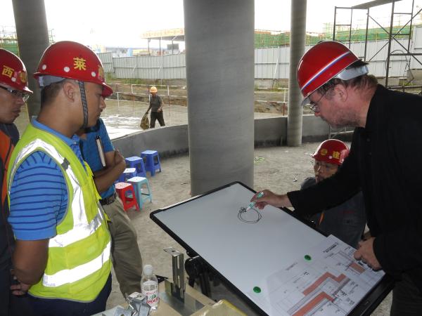 2015年9月2日,被動(dòng)房施工培訓(xùn)活動(dòng)在中德生態(tài)園項(xiàng)目舉辦。該活動(dòng)由德國(guó)專家瓦倫廷先生(德國(guó)設(shè)計(jì)團(tuán)隊(duì)ROA負(fù)責(zé)人)對(duì)被動(dòng)屋施工技術(shù)進(jìn)行現(xiàn)場(chǎng)授課。我公司及相關(guān)參建單位參加了此次培訓(xùn)。
