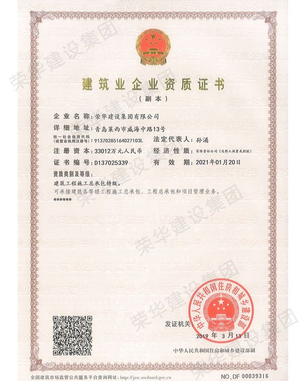 建筑工程施工總承包特級(jí)資質(zhì)證書
