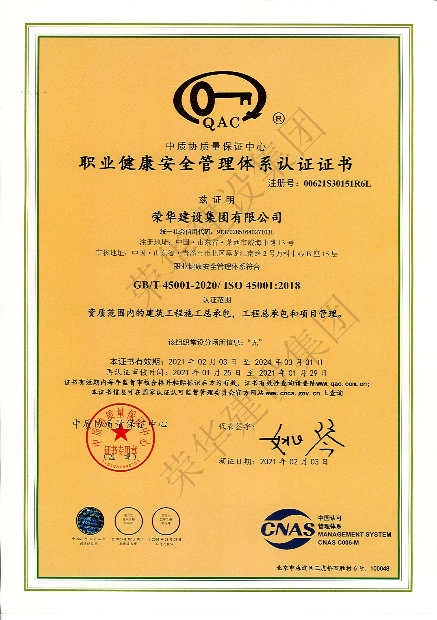 ISO 45001職業(yè)健康安全管理體系認(rèn)證證書
