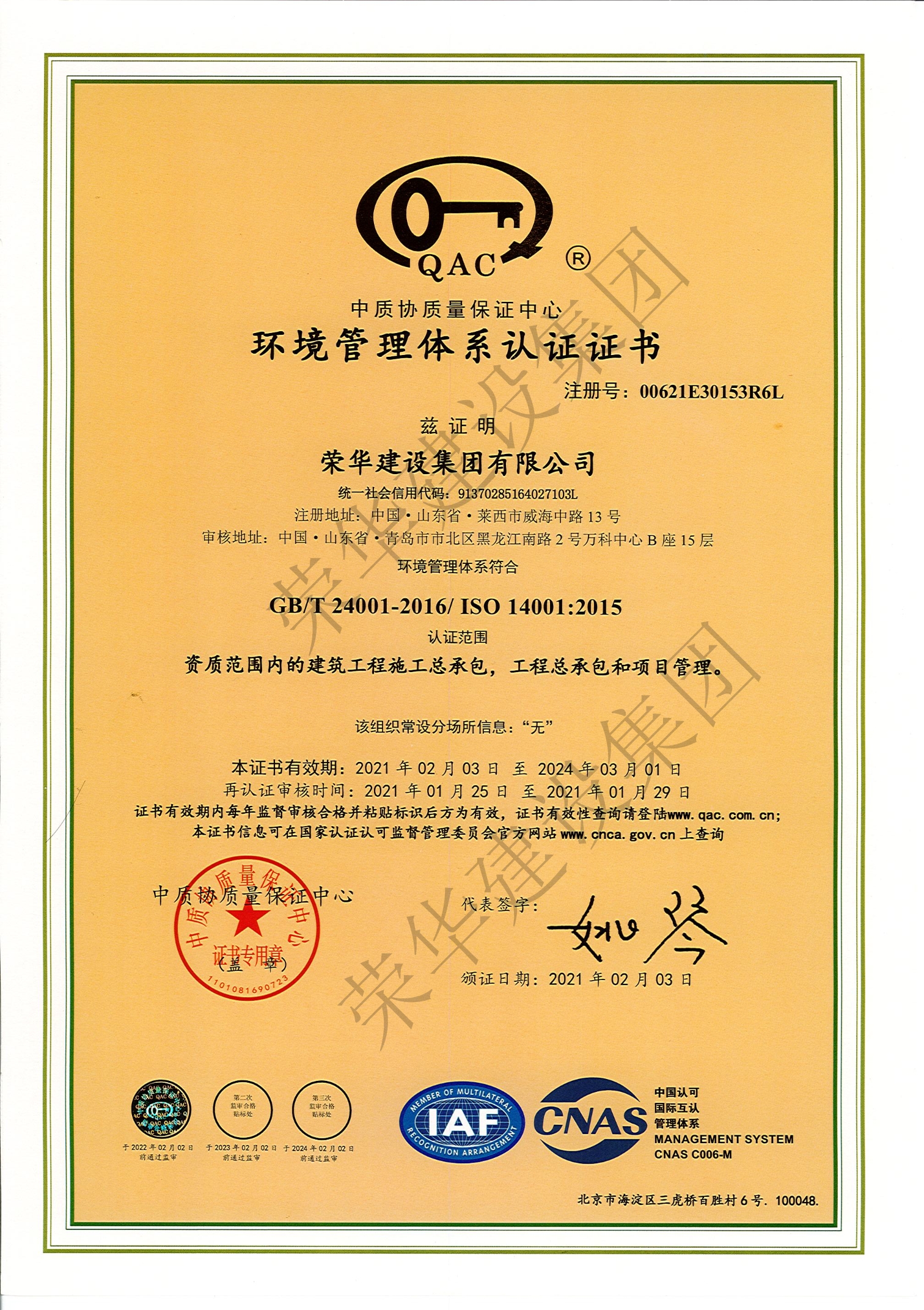 ISO 14001環(huán)境管理體系認(rèn)證證書