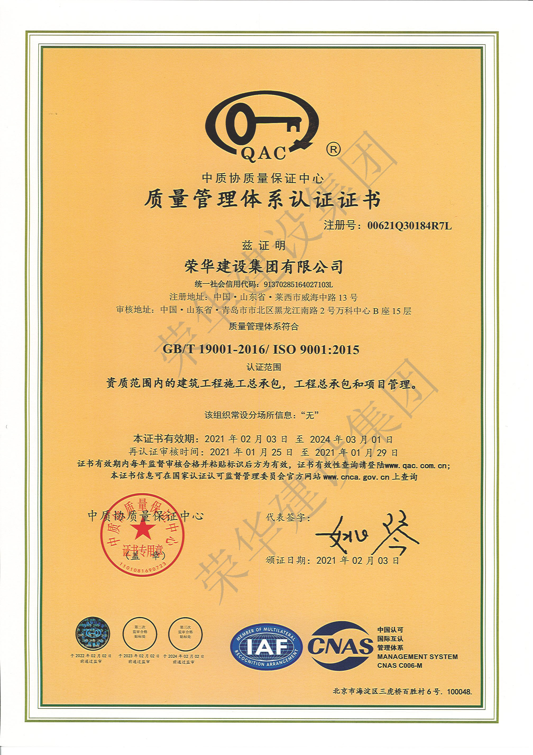 ISO 9001質(zhì)量管理體系認(rèn)證證書